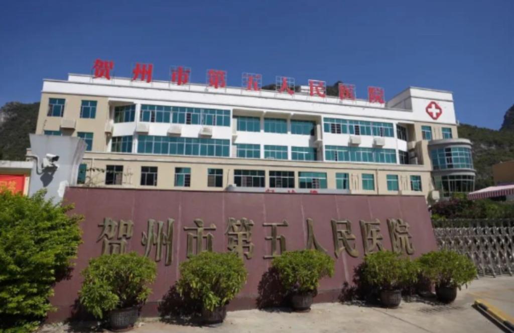 贺州市第五人民医院,位于贺州市八达中路龙华巷39号,经贺州市卫生健康委员会审批,由贺州市皮肤病防治院筹建,于2017年7月已投入使用。贺州市第五人民医院与贺州市皮肤病防治院为“两块牌子,一套人马”管理,是贺州市唯一一所由国家财政全额拨款的皮肤性病防治机构,主要承担全市麻风病、皮肤病、性病、精神病等防治工作的规划、实施、指导和督查。
