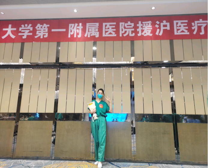疫情之下的她,守护过天地之中的郑州,温暖过七朝古都的安阳。3月底,上海疫情全面爆发,医院号召驰援上海抗疫,彼时刚从隔离病房返回不足一月的我,望着刚相聚不久的家人,年幼的孩子,虽有不舍,依然积极响应,踊跃报名。因为她相信,疫情就是命令,防控就是责任,因为她相信,同舟共济,科学防治,精准施策,就一定能打赢疫情防控阻击战,更因为她是医护人员,身着圣洁白衣,实践着青春的责任与担当。所以她义无反顾,勇敢逆行,跋涉万里远赴上海。上海的第一个战场是在张江方舱,在这里,她参与规划布置了,一脱二脱及清洁区,组建病区,接收病人。在这里,她努力做到了,照顾患者的生活起居,抢救特殊病人,看着他们笑颜如花地出院。在这里,她真实见证了,方舱从杂乱无章到科学布局管理运行,以及患者从入院时的焦灼不安到安心就诊再到出院时喜出望外的心路历程。4月30号,她告别了张江方舱,来到了新的战场——上海市复旦大学附属浦东医院。这里与张江方舱有所不同,收治的都是合并基础病的新冠患者,因此工作模式跟方舱医院完全不同,她内心只有敦促自己快速适应新的工作环境,整合既往的抗疫经验,高效的投入新的工作中。在这边她需要更加细心的照料每一个病人,因为患者更需要她观察是否出现病情变化。病房定时通风、给予病人修剪指甲、温水擦拭、保持病人清洁舒适、每小时帮助病人翻身拍背、填写巡视卡片、每日定时监测血压、q3h监测血氧饱和度……这些都是她的日常。因为有了之前经验的积累,虽然每一项工作都事细且繁琐,但是她依然有条不紊地,不厌其烦的完成每项护理工作,这是作为医务工作者刻在骨子里的责任与使命。经过团队52天的艰苦奋战,团结协作,她实现了医务人员零感染,患者零死亡的目标,圆满的完成援沪工作。